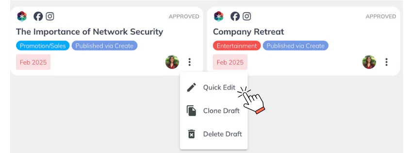 - Open the Quick Edit Menu: Click the 3-dot icon on the Draft Card.