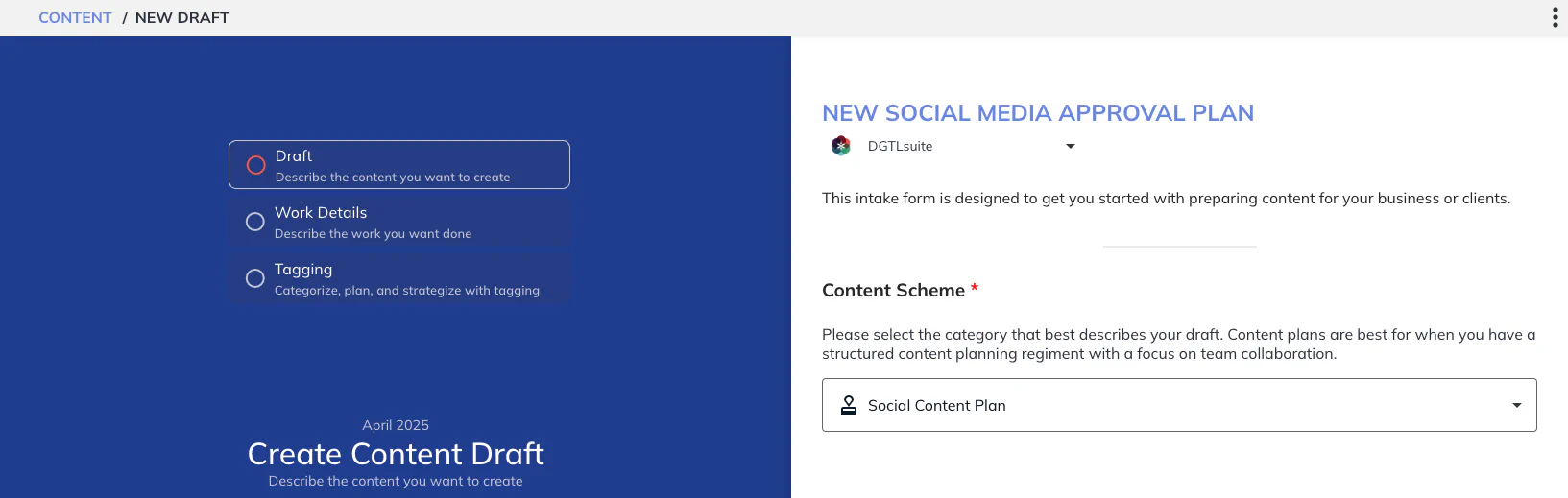 After saving, the view will switch to the Individual Draft View (2 column layout), where you can refine and manage your draft.