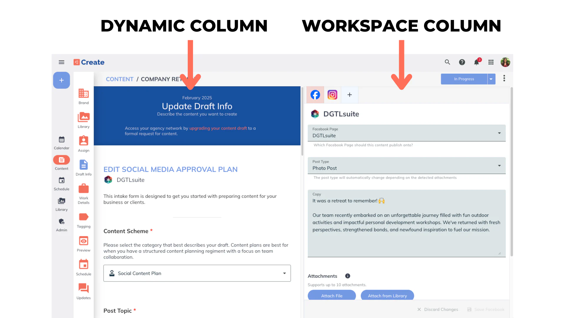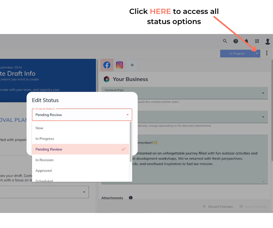 Managing content in Create is a streamlined process that takes you from ideation to scheduling and publishing. This guide will walk you through each step, including creating drafts, uploading final deliverables, assigning tasks, and scheduling posts.